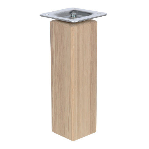 Négyszögletes fa bútorláb fém karimával, amely a bútor aljára csavarozható. A láb nincs lakkozva, lehetővé téve a festést bármilyen kívánt színnel, vagy olajjal, viasszal, lakkal kezelhető.