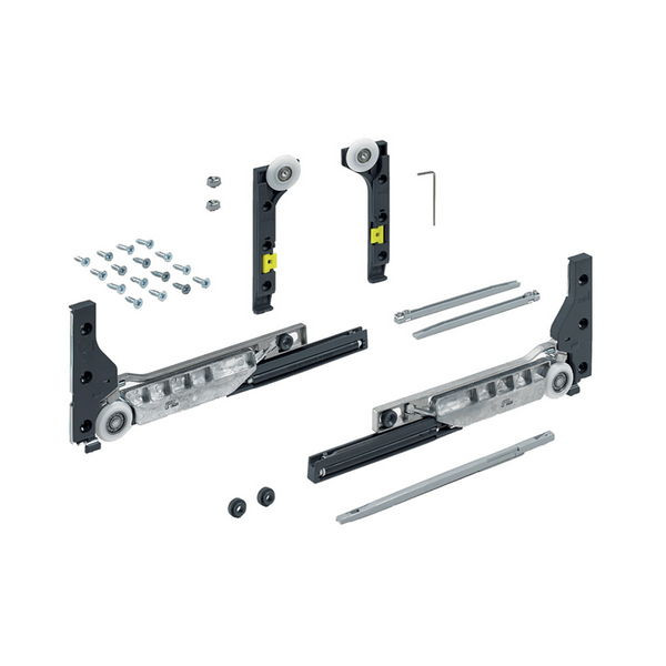 A készlet tartalmazza az 1 db Silent Systemmel rendelkező fa tolóajtóhoz szükséges összes alkatrészt