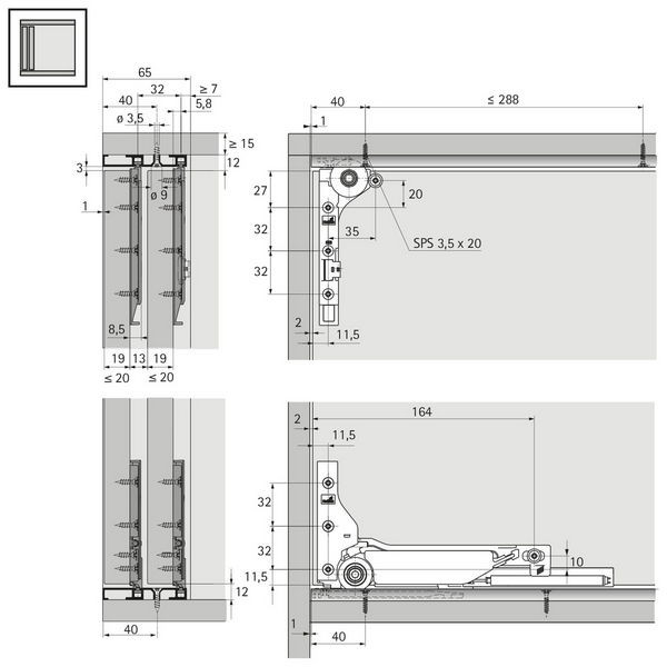SlideLine M Silent Systemmel ellátott ajtókhoz való szerelvénykészlet (csillapított zárás, csillapított nyitás és csillapított ütközés), 10 kg, Minimális ajtó szélesség: 450