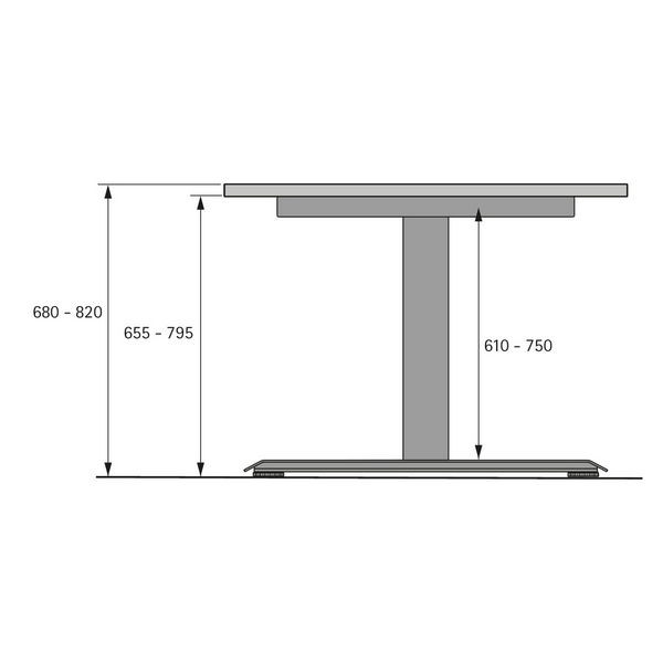 680 - 820 mm-es asztalmagasság 25 mm-es asztallap használata esetén